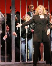 It is a wonderful --and costly-- gesture for the Prince Music Theater to stage Anyone Can Whistle for 12 days to celebrate Steven Sondheim's 75th birthday. However, speaking as someone who likes Sondheim and respects Arthur Laurents' work, I have to say you'd do better to buy the music and listen on your ipod. This concert version, which Arthur Laurents wrote for the 1995 Carnegie Hall production, seems to have been extrapolated from the stage version in shorthand. Director Charles Gilbert has done the best he can by it, but the book remains a dog's bre>akfast. Lab coated ushers give audience members an amusing advertising leaflet for Dr. Detmold's services. This paves the way for audience-implicating bits to follow. The story includes a concocted miracle, escaped inmates who are either crazy or not, and a love motif with a disguised nurse and an ersatz doctor. Add a muddled anti-conformist agenda and loose ends. Then let things spin out of control, and you have some idea of the tangle Charles Gilbert has on his hands with this musical. Act one is problematic, not just because it's hard to make sense of the story, but because the pacing is awkward. The Mayoress, Cora Hoover Hooper (Jane Summerhays) and her three bureaucrats, Schub, Magruder, and Cooley (Jim Bergwall, Charles McCloskey, Doug Anderson) bravely handle the material, still this show lacks the polish we are accustomed to seeing in musicals. Act two, perkier by far, generates good songs and pretty good pandemonium, and a nice, yet all but incomprehensible finale. Jane Summerhays' characterization of Cora Hoover Hooper is a plus, but she sure could use a couple of costume changes. Chuck Wagner's "Everybody Says Don't" was nicely turned out despite his flu. Todd Waddington does a good Narrator /Dr. Detmold. The inmates of Dr. Detmold's insane asylum, called "Cookies," have great names like Chaplin, Marty King, Ibsen, Mozart, and Freud. Sondheim's lyrics-- civilized, crazy, and sensitive -- as any aficionado knows, feature a lot of word play, which the ensemble handles well. Standout Cookies are Billy Bustamante and Jarrod Lentz. Understudy Taryn Cagnina, who was underwhelming in Act I, really stepped up to the plate in Act II for <":See What it Gets You", which also reprises "Anyone Can Whistle". Later, her voice lacked the power to hold its own in her pairing with Wagner for "With So Little to be Sure Of". The large orchestra under the direction of Sam Davis is on stage. It does a fine job negotiating the complicated, layered score. The music is crisp and brisk yet moody, a fabric of sound that provides a needed unifying element to the action. But the score is too cerebral to stoop to the sentimentality that would allow this to be the love story it (partly) wants to be. The original stage version in '64 may have alienated audiences partially due to its content. But rebellious content is not this show's biggest problem. The clash between the disjointed confusion of the book and the sophistication of the score creates a dissonance well beyond the desirable dissonance of the music. Although it is unfortunate that two lead players had to perform while sick, and the third couldn't make it, this show doesn't succeed or fail on individual performances. The music deserves to be heard, and more recordings should be made of it. But sad to say, the fine team assembled by the Prince is unable to resuscitate a musical delivered DOA forty years ago. For a different take on the production, based on a 2003 production in Los Angeles go here.