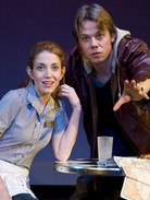 This new pop-rock flavored show has some nice things going for it, but I don't think it's on a par with Burnt Part Boys or the pre-Lab hit, The 25th Annual Putnam County Spelling Bee that made the big leap to Broadway, helped finance Barrington Stage's growth, and returned to the company this season on the first lap of a tour. Still, it's an interesting concept for musical story telling — in this case half a dozen vignettes set in various legendary tourist attractions, all different and yet thematically the same in that each contrasts a risk taking character with someone who finds it more difficult to break free from emotional boundaries. One of the vignettes has a commitment phobic schoolteacher nudged into opening her eyes and heart to love by her grandfather, who still believes in taking a chance on love even though he's a stroke victim. Another revolves around a young bride, running scared just before taking the plunge. A different kind of letting go in order to move forward, is about three sisters ( who are about to toss their father's ashes into the sea but still haven't come to grips with letting go of their beloved dad. Clearly, the show delivers on the musical travelogue concept with its round robin approach of hopping from episode to episode, from Rock City, to the Alamo, to Glacier Park and to Coney Island. The episodic structure begins and ends with the first two characters' decision about whether to move forward (and together) from their Rock City adventure. It's a structure that allows economical double casting (a major consideration for putting on any show these days), so that seven actors can play fourteen parts. While the connecting thematic link ties everything together neatly, it's just a bit too neat. After a while the pairing of the characters feels a bit too symmetrical and obvious. To give an example, you know from the get go of "Remember the Alamo" that not long after unmarried schoolteacher Lauren (Cassie Wooley) wheels her beloved stroke incapacitated Grampy (John Jellison) on stage, he'll rise from that wheelchair and, with hands no longer trembling, deliver a song (Yes, it's called "Grampy's Song"). You also know that his mumbling insistence for the man having his lunch on a nearby bench (David Rossmer) and Lauren to get together will end up being a successful matchmaking effort. Hokey as that romantic & vignette is, it actually is the one that helps the show gain considerable altitude, thanks largely to Ms. Wooley's powerful voice. Perhaps if See Rock City and Other Destinations were scored for and with a small band instead of a piano and the voices of all the performers were as strong as Wooley's, the pop-flavored songs would have made a stronger impression. Wooley also lends her strong vocal chops to the amusing "Crossing Glacier Bay " segment, as one of the three sisters who are reliving a childhood ocean voyage with the urn holding their father's ashes part of their actual and symbolic baggage. She's well supported in this piece by Jill Abramovitz and Gwen Hollander. As befits this small venue and the Lab's showcase mission the production values are simple but could easily be spiffied up if the show were sufficiently fine tuned to be mounted elsewhere. If that happens, how about adding a playlet set in one of the Berkshire's many legendary attractions like Monument Mountain and Mount Greylock? PRODUCTION NOTES See Rock City and Other Destinations Book and lyrics by Adam Mathias Music by Brad Alexander Directed by Kevin Del Aguila Cast: Jill Abramovitz (Claire, Kate), Gwen Hollander (Dodi, Lily), John Jellison (Grampy, Carney), David Rossmer (Dempsey, Ticket Seller), Benjamin Schrader (Jess, Waiter, Cutter), Wesley Taylor (Evan, Rick), Cassie Wooley (Lauren, Judy) , Pianist/Music Director: Vadim Feichtner Sets: Brian Prather Costumes: Mark Mariani Lighting Design: David F. Segl Sound: Jillian Walker Stage Manager: Wesley Apfel Running Time: 1 hour and 35 minutes, no intermission Reviewed by Elyse Sommer 8/13/08 August 7 to 23