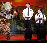 The answer is mostly yes with some no. The very irreverent satire with lots of politically incorrect and pop culture references is, except for a few po-faced members of the audience (probably adherents to the Republican right), being very well received. Tours that turn up here a year or more likely two years after taking Broadway by storm sometimes lose some of their zest. That certainly is not the case with this production. The cast races through the comic turns and Casey Nicholaw' s terrific choreography at a breathtaking pace. And although this is an ensemble piece through and through, there are some performances that truly stand out from the rest. Mark Evans, as Elder Price looks like the perfectly clean cut, upright, God-fearing young man he is supposed to be so his slide into moral flexibility is all the more funny. His impeccable comic timing helps, too. The cast is almost very young, and their exuberance is exhilarating. Evans has already racked up several impressive stage credits (mainly in London) but Grey Henson (as Moroni and Elder McKinley) and Christopher John O' Neill (Elder Cunningham) are recent college graduates making their professional debuts! What a start and what a future these three performers have ahead of them. At 6 foot 3, Grey Henson is hard to miss. Admittedly he dances center stage but even among an ensemble that is performing perfectly, he stands out as a mover you cannot forget. Plus he never milks his gags too hard, especially in the number where he recommends denying homosexuality. If anyone steals this show, or rather this production, it is Christopher John O' Neill as the chubby, friendless schlub whose tendency to lie leads to a highly amusing confrontation with the Mormon Church' s elders that in turn results in recognition and admiration from his fellow missionaries and their African converts. It's no surprise that O'Neill started out as a comedian. He delivers his lines with an endearing child-like naivete and his physical comedy and dancing is very funny too. Now for the bad: because of over-miking and silly lip-synching, the exposition of the openning scene is unintelligible. Fortunately, the lip-synching appears to end after the first scene. However, many of the lyrics are lost. Admittedly every house is different and every seat in it can be good or bad depending on the show and its sound designer but at these prices it would be nice for all to hear what is being said/sung. I wonder sometimes, when there are audio problems, is it me? I don' t think so and judging by the comments in the ladies room at intermission, I had plenty of company in not discerning the words. Nevertheless, the show is fun. I' ll read the lyrics online.