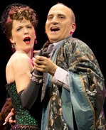 All these elements are indeed in place in February House, currently being presented at the Public Theater's Martinson Hall in association with the Long Whart Theater. It's a delicate piece that's not going to please those for whom musical theater heaven is a show built around a book offering up a clearly defined plot with a happy ending, toe-tapping, hummable tunes, sung and danced by a cast featuring at least a few well known performers. Instead February House is aimed at fans of musicals like John LaChiusa's See What I Wanna See and The Wild Party (also presented by the Public,), Jim and Ruth Bauer/s The Blue Flower, Stephen Sondheim's Sunday in the Park With George. Gabriel Kahane's comic and occasionally dissonant duets, love songs and wistful little musical essays have flashes of all those composers charms. The show is based on Sherill Tippins's 2005 book February House: The Story of W. H. Auden, Carson McCullers, Jane and Paul Bowles, Benjamin Britten, and Gypsy Rose Lee, Under One Roof in Wartime America. Theatergoers unfamiliar with this era and its literary, artistic and musical celebrities would be well advised to prepare for it by readding Tippins' carefully researched and enjoyable account of the brief period just before the United States entered World War II when a shabby brownstone at 7 Mittagh Street in Brooklyn became a Yaddo-like boarding house. (it's available at Amazon for as little as $5). The Bohemian commune documented in that book was the brainchild of George Davis, a flamboyant literary editor, who finding himself at loose ends after losing his job as Harper Bazaar's fiction editor, rented the house and became landlord and mother hen to the tenants, most of whom were, like him, homosexual, or bisexual. Seth Bockley, the show's book writer, had to streamline Tippins' more detailed history, especially since it had to accommodate the music. Thus, while many of New York's intelligentsia visited the commune (one of whom, Anais Nin, named it February House because so many birthdays fell during that month), the focus is therefore on a handful of residents and their interaction. While performers and designers have done a nice job of capturing the flavor of the period and this unusual establishment, Buckley has been somewhat less successful in makingt he page to stage transformation work as a consistently dynamic story. Oddly, it is both too long and too sketchy. Since the Long Wharf premiere, the music has been enriched by expanding the band from two to six musicians. Some careful trimming of dialogue and songs would have helpe to make it a less rambling affair and downplayed the music's at times sounding repetitious. February House is thus a tasty if somewhat too insubstantial slice of twentieth century cultural history. There are no big ticket selling names in the cast list — Julian Fleisher's who by virtue of his role as the man who cooked up the idea for this Brooklyn-based artistic dream, is best known as a nightclub performer (He did play a talking Cat character in Coraline). Director Davis McCallum has seen to it that he and the performers embrace their 1940s personas with moody authenticity. Their outfits by Jess Goldstein are fabulously 1940s and their singing is accompanied, but never drowned out, by the excellent sextet of musicians inconspicuously positioned at the rear of the stage. Initially, some of the assorted pieces of furniture Ricardo Hernandez has scattered over the large playing area are covered as if someone were moving in or out. This establishes. both the hopeful beginning as well as the filled with regrets ending. The covers come off as George (Julian Fleisher) and three of the pivotal characters sing "A Room Comes Together," transforming a riff about interior design into a wishful dream for that furniture to make a family, ("an empire of writers/a writer's menagerie"). That family will consist of Auden (Erik Lochtefeld), and McCullers ( Kristen Sieh) who will be working on her follow up to The Heart Is a Lonely Hunter. Sieh is quite touching as the hard-drinking "Southern Belle who burns so bright." Kacie Sheik as the " literary pin-up who is quite a sight" delightfully displays her pinup credentials and intellectual bent in the first act's catchy "A Little Brain" (which also calls for another round of applause for costume designer Goldstein). The probably less well known members of the group are Auden's paramour, Chester Kallman (A.J. Shively), Reeves McCullers (Ken Clark), the husband from whom Carson is estranged); also Erika Mann (Stephanie Hayes), novelist Thomas Mann's political activist/cabaret artist daughter. The glamorous redhead is Auden's wife, an in-name only arrangement to help her get out of Nazi Germany. She also becomes McCuller's lover who in "Wanderlust" suggests that they travel together to spread her warning about the dangerous world situation. The tenants surprisingly relied on for comic releif are classical composer Benjamin Britten (Stanley Bahorek) and his domestic and artistic partner, the tenor Peter Pears (Ken Barnett). They look and sound as if they'd just stepped out of a Gilbert and Sullivan operetta. While Bahorek and Barnett are amusing, I think Britten and Pears would turn over in their graves if they heard their stand-ins in February House singing a campy duet about one of many of the under-funded house's most unpleasant problems, bed bugs. The show would benefit from losing that "A Certain Itch" ditty and taking this pair right to their cheerful departure for California "where the sky is never grey/we'll eat yogurt and o yoga/and we'll take a swim/almost every day." Kahane's has a nice flair for lyrics whose rhymes are never forced and peppered with witty allusions, such as George's conducting a mock marriage for Auden and Kallman with "By the authority invested in me by the ghost of Oscar Wilde, I pronounce you man and man!" Naturally, the several songs using Auden's poems as lyrics are even better. You can