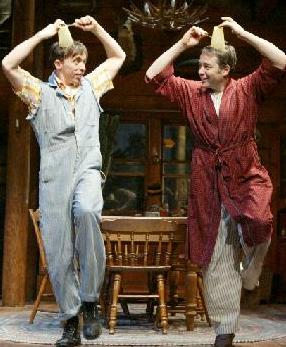 Not being inordinately enamored of the hokey schlemiel farce epitomized by Larry Shue's The Foreigner , -- even with an always timely underlying moral -- I probably would have skipped seeing the Roundabout's version of the Scott Schwartz directed revival I saw two years ago at the Berkshire Theatre Festival. But the box office savvy company has played an irresistible trump card by casting Matthew Broderick as Charlie Baker, the personality challenged, cuckolded Brit. The milquetoasty Charlie is made to order for Broderick's ability to segue from apathetic unassertiveness to animated, airy physicality, and to keep a poker face no matter how absurd things get. He also jumps from Brit-inflected English to a Shue-fangled pig Latin and joyfully pronounces seemingly just learned words in an odd foreign accent. In what's probably the evening's comic highlight, he plays a gleeful Simon Sez game involving a little dance with orange juice cup balanced on his head. The same designers who worked with director Schwartz on the Berkshire revival have been enlisted for this production. Anna Louizos' woodsy Georgia lodge is a little taller to accommodate the Laura Pels stage but the show's look is pretty much as I remember it. Schwartz has also hired Kevin Cahoon to recreate his role as the dim-witted Ellard Simms. A smart move, since Cahoon, something of a Ray Bolger look alike, is a perfect counterpoint to Broderick's Charlie. The rest of the current cast, which includes the always wonderful Frances Sternhagen as Betty Meeks and Byron Jennings as Sergeant "Froggy" LeSueur, ably supports these two clowns. Good as they are, unless your comic tastes run to hokey L'il Abner variations, Broderick is the only excuse for giving this community theater favorite a major Off-Broadway production. For more details about the plot , check out my Berkshire Theatre Festival review. My reluctance to recommend it as a nonstop, highly charged hilarious evening applies now as it did then. To get to the better second act, you must sit through the lengthy first act's many a stagnant moment with long pauses between laughs. To be fair, on the night I was at the beautiful new Laura Pels Theatre, there were plenty of people who were obviously having a grand time. And of course, there is the truly hilarious Broderick.