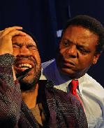 This is not the first time Simon, an actor, screenwriter and playwright, has concerned himself with issues of race. Part One, Toussaint — the Soul — Rise and Revolution was nominated for 10 NAACP awards in 2001, and The Bow-Wow Club was the winner of the 1998/1999 Lorraine Hansberry Award for best full-length play. The Guest at Central Park West was developed with the WorkShop Theater before it went on to the Hadley Players in 2007. Now it's back home, helmed by Thomas Cote and starring John Marshall Jones, best known as Floyd Henderson on Family Channel's Smart Guy. Many TV viewers may come to see Jones. They will leave impressed not only with his performance but with the overall quality of a play that is thoughtful, provocative and very, very funny. The play begins shortly after African-American Professor Charles Watts (Harvy Blanks) has been awarded the Nobel Prize for his pacifist book, The Eyes of Peace. He and his African-American wife, Professor Nina Odood Watts (Trish McCall) are about to celebrate with two old friends, the white Professor Eric Engles (Jed Dickson) and his white wife, Professor Jennifer Engles (Tracy Newirth). It soon becomes apparent, however, that there will not be a peaceful evening in this fashionable apartment with its African masks on the wall and tables laden with food and drink. The tension begins when it is revealed that Nina and Charles are receiving anonymous threatening phone calls from someone who feels that Charles's pacifist statements are somehow anti-American. It increases when Jennifer and Eric arrive and the troubled state of their marriage becomes immediately apparent, and increasingly explosive the more Jennifer drinks. Things come to a climax when Charles welcomes into his apartment a homeless African-American man named Terrance (Jones). Terrance is dirty, smelly, belligerent, prone to seizures— and probably a bit insane. But he is also an old college buddy and Charles refuses to leave him in the streets. Terrance stirs things up quite a bit with his hints at some mysterious past he shares with Charles, his tendency to violent and impulsive actions and his militant politics. Then Lisa (Erinn Holmes), the Watts' bi-racial daughter (from Nina's previous marriage) arrives with her boyfriend, Seth (Curt Bouril), a white rapper who wears dreadlocks and spout black slang straight from the hood. Simon's dialogue is certainly a little rough around the edges. There are times he gets bogged down in arguments that were old ten or twenty years ago. The plot keeps slipping dangerously close to melodrama. Perhaps most troubling, the characters are nothing if not stereotypes: Charles Watts could be Martin Luther King reincarnated. Engles is the kind of smug, superior white man that makes every other white person want to find a place to hide. It's hard to figure out why Watts became and stayed his friend. But just when the plays seems hopelessly mired in its own pretensions, Simon picks himself up and get out of the mess with a really funny or thoughtful or unexpected comment. He is helped enormously by Cote's energetic direction and the cast's pitch perfect acting. In the end it's not clear exactly what Simon's views on race relations are. Some of the possibilities, such as the efficacy of violence, the nature of guilt, and current levels of racism in America (especially in light of this year's Democratic primaries) are questionable. The final premise is certainly a bit absurd. But it would be nice to think that's what The Guest at Central Park West is all about — questioning, and maybe not coming up with all the answers.
