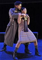 Putting on the Greeks seems to be in vogue this season. Eugene O'Neil's Mourning Becomes Elektra on Theater Row was followed by Classic Stage Company's An Oresteia, and now the Aquila Theatre's The Iliad: Book One at the Lucille Lortel. Happily, the latest Greek offering is something that Homer would likely approve. The Aquila's creative team has taken the Iliad: Book One and ingeniously transplanted the ancient tale to the World World II era. Inspired by the famous D-Day photograph "Into the Jaws of Death" (with American soldiers wading ashore at Omaha Beach on June 6th, 1944), the iconic image has been dynamically superimposed on the physical production. The result is visually arresting, breaking open the myth and infusing it with modern meaning. Director Peter Meineck combines movement (Desiree Sanchez), words (Stanley Lombardo's translation )and music (Anthony Cochrane), carefully balancing all to achieve his theatrical effects. He resisted the current directorial mania to rewrite the myth and risk compromising the power of the great classic. He thus seems to ride easy in the harness of the old tale, reworking the story visually through the World War II setting. Wearing the dual professional hat of production designer Meineck has also developed interesting stage business that serves the story but doesn't clutter it. His Greeks take five rectangular crates— the only props on an otherwise bare stage—-and smoothly and artfully shifts them to convey very different spaces and images: characters sitting on royal thrones, wading ashore to beachfronts, and advancing into battle camps. Meineck does at times strain after an effect but, more often than not, he achieves it. By any definition, the The Iliad is an epic poem: It centers on the final year of the decade-long Trojan War, with the Greeks raiding the Trojan towns and dividing the spoils. Though we don't get to experience the total arc of the epic in this compressed show, we do get a fascinating look through the prism of Book One. Instead of panoramic detail, we get a story told in broad dramatic strokes, mostly centering on the rage of Achilles (John Buxton), and his personal search for honor and meaning. The action begins with the ensemble moving in stylized military formations, gradually forming a tableau on stage. This picture is jarred when the cast members pierce the silence with a stentorian cry: "Rage!" It's a glass-smashing sound—operatic in its force. After a pause the actors continue with the opening lines to The Iliad: "Sing, Goddess, Achilles' rage,/ Black and murderous, that cost the Greeks/ Incalculable pain. . ." Rage is at the core of the myth and we feel its rumbling force in each scene. Naturally, Achilles and Agamemnon (Nathan Flower) are at the dead center of the conflict, ever at each other's throats. The immediate reason for the Greek heroes' problems concerns their wrongful taking of two young women as war trophies. Achilles no sooner begins his heated accusations against Agamemnon when an old priest Chryses (Jay Painter) arrives to reclaim his kidnapped daughter Chryseis (Vaisnavi Sharma). Chryses offers a ransom, but Agamemnon won't relinquish Chryseis. The old priest complains to the Olympians about his abducted daughter, and the sympathetic gods send a lethal plague to the Greek camp. Yes, the Olympians are vengeful figures in this war story, and crush any Greeks who cross their lofty plans or judgements. In drawing on only Book One of the Iliad do we miss the larger sweep of the myth?. Yes and no. In this very visual production, the well-springs of physical movement are explored and plumbed at great depth. A flexed arm becomes a simile for battle and a simple somersault becomes a metaphor for a fall from grace. Many scenes shock like a cold shower. But the most powerful episodes by far are the ones evoking the iconic D-Day photograph, with the ensemble re-enacting the American troops coming ashore at Omaha Beach. The miming of this image becomes the major motif of the evening and each time it recurs, it gains more intensity and pathos. While Meineck has obviously tried hard to teach his cast vocal aristocracy, their delivery is uneven. In the mass debates among the Greeks, the barrage of language is confusing. The taut dialogues between Achilles and Agamemnon the language are much more natural and convincing. Achilles's scene with Agamemnon in which he accuses him of being a greedy war monger ("You shameless, profiteering excuse for a commander"! ) is later reinforced by equally scathing retorts ("Afraid to look death in the eye,/ Agamemnon? It's far more profitable/ To hang back in the army's rear—isn't it?"). It's these emotional exchanges and the flecks of wit, between the 2 heroes that prove to be the more satisfyingly acted episodes. Stanley Lombardo's 1998 translation of is a gem. In the program director's note, Meineck revealed that the company originally relied on Robert Fagles's eloquent translation, but found that Lombardo's punchy, hardbitten version was inherently more performable. Translating a 2700 year-old text is no easy task for a scribe. But Lombardo has poured old wine into new bottles with verve. Admittedly, his brilliant translation is overshadowed by the production's bold imagery. But his colloquial translation is a lasting achievement nonetheless. The Aquila Theatre's project of staging Homer's epic poem is a ten year labor of love and has already taken on a certain patina. Starting out in 1999, it auspiciously began its stage life at Lincoln Center, and branched out to other New York venues like the Classic Stage Company, eventually touring overseas to Syros, Greece. The production is also part of the National Endowment of the Humanities's Page and Stage project, a community partnership that links public libraries with performing arts centers across America. So many productions of Greek works get strangled in the cradle, but not this one. No doubt Aquila's dedication has enable
