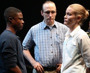 It's that document that inspired Is This A Room , Tina Satter's theatrical interpretation of Winner's final hours of freedom currently playing at the Vineyard Theatre after a short run at The Kitchen in January. More specifically, that document is the play: Is This A Room is a verbatim re-enactment of that transcript, down to each "um" and stammer and awkward silence. Satter imaginatively makes dramatic sense of the transcript's trapdoors: notations meaning "unintelligible" and "inaudible" and "overlapping voices." Once the conversation turns to Winner's crime — which involved smuggling a crumpled paper out of the office in a pair of pantyhose — Satter unveils her solution for staging the redacted portions of the transcript, a simultaneously playful and potent multi-sensory silencing. As an animation of a single document, Is This A Room feels like a refreshingly innovative concept. There's fretful, thoughtful work from Emily Davis in portraying Reality's predicament, especially as her piercing intelligence (Winner speaks Farsi, Dari, and Pashto fluently) chafes against her mounting terror as the gravity of the situation grows more and more apparent. As the investigating officers, the trio of Pete Simpson, TL Thompson, and Becca Blackwell nicely emphasize their wry discomfort in carrying out the interrogation. And there's plenty of taut tension in the air across the bare stage early on as Reality tries her best to defuse tension and kill with kindness, knowing all too well why these guests have come. But it's still only a single document that captures only a sliver of a story. I wonder if the newsworthiness of Reality Winner's arrest is something of a red herring: Satter clearly cares more about what transcribed words can tell us about the people who said them than about the flashier wallpaper of Trump and Russia and the NSA. Choosing this particular from-the-headlines transcript to bring to life distracts from the theatrical magician work she's trying to pull off. That we learn so little about a woman who can (and does) speak for herself in real life (sometimes on network TV interviews) is a frustration rather than a revelation. I'm not sure that I know anything more about Reality Winner, her reasons for breaking the law, or her ongoing pursuit of justice than I did after looking at the transcript itself (which I perused before seeing the play). Is This A Room makes a compelling case for reading police transcripts and engaging with the stories that unexplored documents tell, but it doesn't make as convincing an argument for theater's role in bringing those transcripts to life. Besides the subtle performances from Emily Davis and team, what makes Is This A Room cool is precisely what makes the transcript cool: the sense that there's an extraordinary, unspoken story in there waiting to get out. Even as her story gets told, somehow Reality finds herself redacted in the process. |
