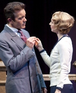 At Shakespeare Theatre's Harman Hall, director Ethan McSweeny substitutes the Manhattan neighborhoods of Little Italy and the Lower East Side for Venice, both places of commerce. This Merchant. . . opens with music from the Jazz Age. Steam rises from an (off stage) train and men wearing fedoras cocked just so, look as though they are refugees from Guys and Dolls. They are ready to do business, but their playwright is about to teach them the serious lesson that "all that glisters is not gold." Portia (Julia Coffey), a beautiful unmarried young woman of considerable wealth, who is abiding by her late father's wishes in that her husband must first be tested by his choice of one of three caskets. In a delightfully strong performance, the diminutive Coffey makes her entrance in riding gear. She exudes confidence and charm, fears nothing, and no one as she almost gallops down the staircase that dominates Andrew Lieberman's impressive set. This Portia is at ease no matter who or what comes her way. She is a coquette one minute and, when disguised as a lawyer, high-minded and strong willed. Her suitors — the Prince of Morocco (Carl Cofield) and the Prince of Arragon (Vaneik Echeverria)— are farcical but not funny. Drew Cortese as Bassanio shows finesse in his pursuit of Portia; Derek Smith makes a fine Antonio. Mark Nelson's Shylock is quite unlike any I have ever seen. Better, perhaps, than the others because he makes this complex character so human. His speech pattern is Lower East Side when that part of town was nothing more than tenements for huddled masses of Jewish immigrants. His demeanor is more than sympathetic. And yet, as he sharpens his knife, to get his "pound of flesh" in the manner of a barber, he is to be feared greatly. In spite of a weak supporting cast, unflattering costumes (by Jennifer Moeller) and a script that demands considerable suspension of disbelief, particularly when Portia does not recognize her betrothed, this Merchant of Venice is highly entertaining and that's what makes it new on the Rialto. Eitor:s Note: As Susan points out, The Merchant has indeed cropped up frequently in recent years. If you check out ou Shakespeare Page you'll see that this is Curtainup's 9th review of this play.