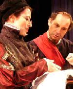 The problem is, we only THINK we know The Merchant of Venice. Then we see it performed by the Pearl Theatre Company and it becomes astonishing, revolutionary and deeply moving. Set in Venice and a villa in the fictitious Belmont, the play begins with Bassanio (Scott Whithurst) asking his friend Antonio (Dan Daily) to loan him three thousand ducats so he can court Portia (Celeste Ciulla) in the style to which he wants to become accustomed. There is a risk of rejection, but, if Portia marries him, her wealth will cover his debts. Since Antonio has invested every last ducat in his cargo ships, still at sea, all he can do for his good buddy is co-sign a loan. Bassanio gets the loan from Shylock who, not being Christian, is allowed to charge interest. Though he bears no personal grudge against Bassanio, Shylock hates Antonio, an anti-semitic bigot, so he asks only that should the loan default, the late-payment fee be a pound of flesh from Antonio's body. Confidant that his ships will arrive soon, Antonio agrees. Later, when Shylock's daughter Jessica (Eunice Wong) elopes with Antonio's friend Lorenzo (Sean McNall), Shylock blames Antonio. What might have started out as a joke, turns into lawsuit with deadly ramifications. On his deathbed, Portia's filthy rich father devised a contest to discourage fortune-hunters from preying on his daughter. Making Portia the prize, suitors must chose among three caskets (strongboxes). Portia puts up with a steady stream of suitors even though she is in love with Bassanio. Since he is in love with her and her money it is a good thing he picks the right casket ("Who chooseth me must give and hazard all he hath."). His friend, Gratiano (Christopher Moore) is in love with Portia's companion, Nerissa (Rachel Botcham) and so another marriage will be celebrated. Antonio's ships seem to have been lost at sea. The deadline for repayment passes. Though Portia gives Bassanio more than enough funds to cover the debt, Shylock forecloses. The Duke of Venice (Edward Seamon) urges Shylock to let Bassanio settle the debt with interest but Shylock persuades him that this would set a dangerous legal precedent. Disguised as a lawyer, Portia urges Shylock to be merciful, then, concedes he is entitled to a pound of Antonio's flesh, stipulating he can not take an iota more or less, nor shed blood. Portia charges Shylock with homicidal intent. To avoid harsher punishments, Shylock must convert to Christianity, give half his assets to the Republic and the rest to Jessica. Portia and Nerissa race back to Belmont, arriving ahead of Bassanio, Antonio and their friends. Nerissa and Portia berate their husbands for paying the young "lawyers" with their wedding rings until Portia produces a letter explaining how they impersonated lawyers and saved Antonio. All ends happily for the three young couples. In this extraordinary play, which is, after all, about money, there are a lot of numbers: three romantic couples, three pairs of fathers and daughters; a sextuplet of male friends -- Salanio, (Jason Ma) Stephano, (Patric Toon), Salerio (Cornell Womack); a pair of women; a pair of Jews (Cuskern as Shylock and Seamon as Jubal) and a pair of clowns, Lancelot (Andy Prosky) and Old Gobbo (Edward Seamon). ("Gobbo" means hunchback in Italian.) Throughout the play, Shakespeare keeps several planets in orbit: greed, justice, loyalty plus filial, romantic, platonic love. While all this is going on, the religious hatred between Antonio and Shylock remains at the center like some vast gravitational force. On my way to the Pearl Theatre, in fact, I overheard someone questioning the wisdom of performing this particular play at this particular time in this particular city where it could be construed as anti-Semitic. (This is not a new "PC" sentiment: NY Yiddish theater only introduced the play into the repertory -- with modifications -- in 1901.) Shylock is certainly one of Shakespeare's most difficult roles. Part victim, part villain, he's neither passive nor without motive. As a follower of the Old Testament, he is a stickler for the Law, but followers of the New Testament, while advocating forgiveness and mercy, are money grubbing hypocrites. While Shylock follows the precepts of his religion, his Christian enemies behave in un-Christlike ways. Clearly, Shylock is the morally superior character. Then why do some feel that Merchant of Venice is anti-Semitic? Dominic Cuskern, who portrays Shylock in this production with stupendous penetration, speculates that Shakespeare used a stereotype to get his Elizabethan audience to recognize the character right away before forcing the audience to sympathize with him. Cuskern's Shylock is so vivid, that when he bursts forth with "Hath not a Jew. . ." he externalizes something extraordinary - not an actor acting but a restrained man suddenly snapping, losing his self-control in an outraged response to bigotry. When Merchant of Venice was first performed in 1596 or 1597, the loyalty of Anglo-Catholics and the question of Queen Elizabeth's successor were dangerous issues. At that time, so few Jews lived in England - mostly artists, performers and physicians. Nevertheless, stereotypes of Jewish moneylenders prevailed. Shakespeare, as court entertainer, was close to one family of Venetian Jews, the Bassanos, musicians and instrument makers whose grandparents were brought to England from Venice by Henry VIII. Shakespeare fell in love with Emilia Bassano (hence, "Bassanio") the "dark lady" of his sonnets. Consummating this love was risky business for she was the mistress of his patron, the Lord Chamberlain. In a number of ways, Merchant of Venice gives clues to the extreme nature of Shakespeare's desire: the only couple willing to "hazard all" and elope are gentile and Jew: Lorenzo and Jessica. (Shakespeare invented the name, Jessica, for Merchant of Venice, adapting Iscah, a name found in Genesis that means "Yahweh beholds.") By setting the play in Venice instead of Lon