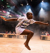 But even Oklahoma! which initiated that golden era of musicals at the birth of the book musical in which the songs and dances were story driven and everything forged into a unified whole, nowadays demands a fresh approach. This show with its sun-drenched, corn-fed optimism especially so. Actually, besides launching the integrated book musical, it also broke new ground with the book's always present dark undercurrents. And it's ratcheting up that darkness that clearly offered the best road map to that fresh approach to directors of revivals. British director Trevor Nunn's 2002 revival (review link), did just that by intensifying the psychological aspects of Jud Fry's menacing presence. But both his Oklahoma! and Jack O'Brien's more recent revival of Carousel (review) were essentially more a case of minimizing and airbrushing the dated elements. It took a member of ever more prominent and lauded school of auteur directing — immersive staging, contemporary settings, innovative casting, use of video — to give us a so drastically re-envisioned Oklahoma! that it almost feels more like a new show than a revival. Despite a top to bottom overhaul, Mr. Fish has not rewritten the text or abandoned the tunes that have always been the the show's strongest suite. Since the performers and creative team on board are so good and in tune with Fish's concept, that even purists are likely to end up leaning as much towards vive la difference than muttering about how they don't make them like that any more. Unsurprisingly, the most obvious and significant interpretive change reflects the times we live more than the celebration of an expanding America — with the farmers and gun-toting cowboys who lived in the territory on the cusp of Oklahoma statehood shown to be as suspicious of and hostile to outsiders as the many gun loving supporters of our present administration. That outsider is of course Jud Fry, which makes him more victim than out and out villain. It also makes Curly, Laurie and even Aunt Eller less representative of our spirited but morally upright forbears. That less morally perfect dramatis personae notwithstanding, this extreme revisical retains many of the original's pleasures. And somehow the rousing titular anthem still manages to evoke the original's celebrative spirit. The most likely to please everyone change is in the aaniel Kluger has orchestrated the beloved score with a bluegrass sound. it's performed by a terrific 7-piece ensemble in an on stage pit carved into Laura Jellinek's woodsy set. Jellinek's stage craft is also a winner, very much in keeping with the director's vision. She has transformed the entire Circle in the Square theater into an environment that immerses the audience in the lives of the townspeople before, during and after the town's box social. The audience sits around three sides of the long runway style stage that features long tables with pots of chill. To heighten the immersive feel, some audience members actually sit on stage, in back of those tables. As for the cast, like the orchestra, it's smaller (11 speaking characters) but they too are ideally cast to fit the look and feel of this environment. Dammon Daunno is a quite different Curly McLain than more conventional romantic leads. But this scrappy guitar playing, fleet footed tenor has plenty of sex appeal to win the affections of the always excellent Rebecca Naomi Jones's Laurie Williams. Patrick Vaill is also terrific as the now less menacing but still complicated and creepy Jud Fry. As Mr. Fish's fingerprints are most evident on Jud's character, they are even more in evidence in the "Poor Jud" number in which Curly suggest that his rival should hang himself and mockingly eulogizes him when he does. This now plays out as a black and white video, and is actually quite effective. The leading lovers also have their comic counterparts — Ado Annie, Ali Akim and Will Parker (Ali Stroker, who literally dances in her wheelchair, Will Brll and and James Davis). Mallory Portnoy, uses an amusing hysterical giggle to make the small and not absolutely needed role of Gertie, who would be happy to take Laurie's place in Curly's affection. And, of course not to be overlooked is musical theater veteran Testa as the town's butter spinning, fountain of wisdom. Costume, lighting and sound designers Terese Wadden, Scott Zelinski and Drew Levy round out the excellent stage craft. Except for a few scenes, Zelinski wisely keeps the lights up most of the time to support the idea of making the audience feel part of what's happening on stage.