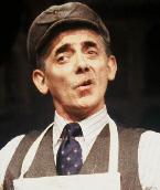 Playwright Mike Finn, himself a Limerick man, conceived his affectionate though not uncritical amalgam of Pigtown stories as a "promenade production" with the audience moving around a large space to different small playing areas where individual stories unfold. As anyone who has been to the Irish Rep knows, it is a modestly proportioned space that requires considerable rethinking of Finn's ambitious concept. With the help of designer James Morgan, director Charlotte Moore has created a Limerick landscape in the form of a pastel wall mural that leaves the small stage uncluttered and open for the eleven actors to navigate the stage (and occasionally the single aisle) to move back and forth through the decades and in and out of close to two dozen characters. Morgan's comically skewered buildings work well with the expressionistic staging, a stage manager-narrator who pops out of his coffin to have a look back at his own and his fellow Pigtowners' lives, and the broad comedy of some characters who appear regularly, like figures from a weekly newspaper cartoon. In the last category there are three boys representing Limerick's great enthusiasm for sports (David Costelloe, John Keating, Aedin Moloney} and two daffy and inept radio show hosts (the versatile John Keating and Dara Coleman), who at one point give a swimming lesson which we see acted out by their "listeners" and acted upon with a sermon on the sins of nakedness from the local priest. Tommy Clock's nonlinear narration is not hard to follow since a large hanging clock marked by decades serves as an alternative to title projections. From the opening scene of Tommy's funeral when the hand of the clock is poised to edge forward to 1999, someone always manages to move the clock's hand to the era during which the next story will take place. And as played with quirky charm by Jarlath Conry, Tommy is also easy to like. While the choice of events and stories stuffed into two hours is remarkably complete, Tommy's stories often seem to be less about real people than types created to characterize Limerick. This applies mostly to the somewhat overdone comic aspects of the play, and leaves it to the darker episodes to provide the emotional highlights. One of these darker and most powerful episodes gives universality to the plight of a wife (Terry donnelly, once again proving herself to be one of the company's outstanding regulars) abused by a thuggish husband (Anto Nolan). While the family drama unfolds behind a white lace curtain, a local policeman (Declan Mooney), embittered by his helplessness to do anything, shows Tommy Clock his notebook filled with a list of wives stumbling into doors and babies falling out of cribs. "There are parts of this town where the light never shines" he says, adding "and those names never appear in a book--except this. You see the town with sepia-colored glasses." When Tommy protests "You're making it sound like a horrible place", he drily responds "No, I'm making it sound like a city. " A similarly moving, well-written scene involves a Limerick outsider, Elsa (Rosemary Fine handling her monologue with powerful restraint) a Jewish refugee from Vienna's Nazi regime. At sea in "a town filled with pork", she is driven to a starkly dramatic response to Limerick's anti-Semitic comments about her being a Christ killer. While some trimming of the repetitious comic bits would have avoided dull spots, there's enough lovely writing throughout, to make a visit to Pigtown worthwhile. Tommy Clock, who gets the lion's share of the more memorable one-liners, sums up the play's raison d'être better than anything I could tell you: " Time is stories--stories is people-- time is dog-eared memories creeping like shades across your heart. "