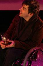 What Peterson and the cast have done is to have the actors regularly step out of character to announce which version of the unfinished script (Belluso wrote five versions) would follow. At times, a scene from one version is replayed as written in another. For some scenes that Belluso never got to write but made notes for, those notes are read before moving to the next scenes. Given the chaos of Ian's go nowhere, love starved, drug-filled real world and the dreams of the horrendous war experiences that haunt him and keep him from seeing a psychiatrist, this jagged style of story telling works extremely well. Per this series' title, this remains a work in progress that has undergone changes and some cuts even since the initial performance. But, whether future productions will feature the actors as announcers format and multiple scene staging, The Painful Itch along with George Packer's Betrayed (review), is one of the most powerful plays to have come out of the awful Iraq conflict. No small measure of what makes the Public Lab production an evening of meaningful, gripping theater is attributable to the fine performances, from the central character to the ensemble players. Both Christopher Thornton (himself wheelchair bound as a result of an accident) and Deidre O'Connell have appeared in Belluso plays before (together in Gretty Good Time, and O'Connell in A Nervous Smile--see links below). Thornton grabs hard at your heart as the War veteran who has as much trouble coming to grips with some of the awful things he witnessed and took part in (this is probably the first time you'll see waterboarding actually carried out on stage) as with his lack of mobility. Deidre O'Connell, an actress long overdue for a starring role in a major, long running play, gives an as always warm and nuanced performance as Ian's mother. Also excellent are Michael Chernus as Ian's best friend, who is messed up even without having been to war, and Susan Pourfar as his pregnant girlfriend with whom Ian had an affair before he left for Iraq. Alicia Goranson is uniquely endearing as Ian's no-nonsense but sympathetic visiting nurse. Also impressive are the actors appearing through Ian's dreams: Marc Damon Johnson as Ian's friend and commanding officer and Piter Marek as a singing blind translator with whom he travels Huckleberry Finn/Tom Sawyer like on a raft down the Tigris River. For a play series that announced itself as being "minimally" staged, this production has remarkably fine visual and oral support. Ben Stanton's lighting is particularly noteworthy and a door that appears in Ian's dreams is typical of the imagination and care invested to make this play as enjoyable and memorable as it is painful. Unfortunately, The Poor Itch ends its run this weekend. The good news, is that there are three more Public Lab productions coming up: THE CIVILIANS' PARIS COMMUNE April 4 - 20 By Steven Cosson and Michael Friedman. Directed by Steven Cosson THE FEVER CHART: THREE VISIONS OF THE MIDDLE EAST April 25 - May 11 By Naomi Wallace. Directed by Jo Bonney THE GOOD NEGRO May 16 - June 1 By Tracey Scott Wilson. Directed by Liesl Tommy PENALTIES & INTEREST June 10- 28 By Rebecca Cohen. SWEET STORM June 28 - 29 By Scott Hudson. Directed by Padriac Lillis Other John Beluso Plays We've Reviewed: Gretty Good Times Nervous Smile