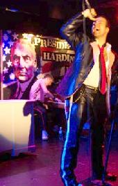 The play (perhaps more properly called a theatrical event, for the dramaturgical challenges cannot have gone through much of a gestation period) is remarkably apt, considering how well Harding's package of presidential strengths and weaknesses prefigure contemporary Oval Office considerations. Aspects that deserve more exploration include Harding's unusual rise to political heights, more development of the marital relationship, and attention to the reasons for the minimally-known candidate's extraordinary popular victory of 61%. The role of women helping to choose a president for the first time is nearly ignored. Given the ample political notes in the program, one also is left to wonder why Harding's low-profile successor, Calvin Coolidge, was able to overcome not only the Harding scandals but also a weak economy to easily retain the White House in 1924. The show begins with a genial welcome by creator/pianist Kyle Jarrow who leads his trio in a pounding musical introduction to bring Harding onstage, much in the manner of a famous but failing rock star. Unfortunately, the musical amplification (in a theater with barely 50 seats) overwhelms a lot of the lyrics, and nearly made me leave just to protect my ears. Cue cards displayed to underscore the lyrics suggest that the creators know they have a sound balance problem, yet are happy to flaunt it. The cards might be forgiven if at least they looked professional rather than like hasty props for a grade-school pageant. The early scenes float on chiefly frantic energy, often feeling like a hybrid of a drugged-out version of Bye, Bye Birdie and a 1970-era Hasty Pudding show by Harvard undergrads. Finally, though, President Harding begins to find itself, the lyrics become largely audible, and either the ears adjust or the amplification levels soften. Details like Harding's call to his "band" for a slower tempo and his retort to a complaint that he's "such a child" with "[But] I'm charming, aren't I?" bring the humor to the level that should be the standard rather than the exception for this show. Ultimately, the audience has a chance to not only be fascinated by President and Mrs. Harding and their world, but also to reflect on the socio-political implications of the "everything old is new again" theory. Fantasy sequences with Harding's apparent historical heroes, Alexander Hamilton (check your $10 bills in case you've forgotten our first Secretary of the Treasury) and France's Napoleon buoy the story, as do the presidential indiscretions with very young nubile ladies. The -group scenes involving cabinet members, cocaine parties, and a poker game which finds the White House china and staff assignments in the kitty have potential, but die of sophomoric silliness. Director Alex Timbers has achieved useful variety and strength in his leading players, and an adept ensemble that maneuvers its way around Brechtian in-your-face stylistic changes that include vaudeville, realism and melodrama. If he can (1) get his writer to flesh out the script by both bolstering the leads and finding a third dimension to some of the supporting players and (2) overcome the deafening and unintelligible rock elements of the audience-unfriendly opening segment, President Harding may be able to find broad public appeal. Choreographic additions would also help to invigorate the performing style. The production design by David Evans Morris has a fluid simplicity which suits the constantly changing locales, and the use of Warhol-like images of Harding to reflect his icon-aiming charisma are most effective as the show's visual signature. Costumer Caroline Duncan shines in her combination of '70s style go-go boots and mini-skirts as modified for the flapper era for Harding's groupies. If her sense of humor were applied to the entire cast, the results should give the show added bite.