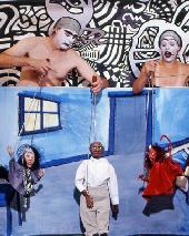 The Obie-award winning troupe Great Small Works seeks to change this with their latest piece, The Rapture Project now playing at HERE. The show purports to examine the influence of religion and fundamentalism in contemporary American culture and politics. A timely topic, to be sure, but one not best executed with marionettes. While the Satan and Ghost-of-Susan-Sontag puppets alone are worth the price of admission (especially when they go head-to-head at the end), the play as a whole is uneven. Great Small Works mixes the puppetry with live action, but the live action doesn't add anything to the performance. With two narrative exceptions, this involves nothing more than dancing actors in funny hats or actors in funny hats playing musical instruments. The puppets, while cute, are amateurish, and I'm not sure the audience is meant to see the actors' hands manipulating the puppet strings. The story touches on both Muslim and Christian fundamentalism, but fails to explore the culture clash between them in any depth. We hear a lot about Biblical interpretations of the Rapture and the End Times, but nothing really about what that means to Christian Americans or how it may affect everyone else. And, shockingly, there is not one mention of George W. Bush, though the piece does touch on the war in Iraq. Despite the weaknesses cited , the troupe and the production are full of heart. The Creationist tour of the Grand Canyon is priceless (if a little disturbing), and the concept does manage to draw on classic Sicilian pupper theater's Orlando Furioso cycles which performed the clash of Christians and Muslims in the nineteenth century. The singing and dancing, while extraneous, is well-done and also draws on Italian folk roots. Though the superficial exploration of weighty issues is meant to be comical, the production as a whole comes off not so much lighthearted as just silly. Still, given current events, audiences can probably only take so much earnest and deep examination of fundamentalism. Hence the spastic puppet showdown at the end—watch Satan and Susan Sontag fight to the death! See Muslim punk extremists from Buffalo take on Al Jazeera! Amaze at Hasidic Jews trying to build a stadium for the Dodgers in order to speed up Armageddon! (Don't ask.) The backdrop, with its intricate faux-1920s black and white religious drawings, is fantastic. The rest of the design is a little distracting, especially the hats and the music. Ultimately The Rapture Project is just that—a project, hopefully a still-developing one. I'd love to see this with a more substantial script and a little more polish and flair. It's a great beginning, even though it isn't quite rapturous yet. A word about the venue: HERE's new configuration is a bit like the uber-hip New York club. You have to know where it is in order to find it. The ticket office has been relocated to the side of the building, and you'll have to go back outside and reenter a different door to get to the (downstairs, not handicapped-accessible) theater. The staff has helpfully put down some red tape to direct confused theater-goers.