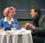 We can see right from the start that Claudine feels inadequate in the shadow of her icily parental mother's success and that she has a long way to go before she will get full approval from her and become that really new girl in town. If this play seems (pardon the cliché) ripped from the headlines, its theme as well as its message shares an immediate and topical kinship with the current best-seller Lean In by Facebook CEO Sheryl Sandberg, in that it gives us a rather authentic but also pragmatically chilling, slightly altered perspective of the cost of success and its effect on personal relationships. Stewart runs with the basic situation of a plain-looking woman who feels unloved by a parent while also feeling that she might be loved for herself by a man. She twists the basic plot just enough to give the notion of money as power and women as power brokers a resonance that should make Ms Sandberg's heart sing. One doubts if Stewart, who has worked as a professional stage manager and has evidently moved on to write plays, has purportedly been working on various drafts of Rich Girl for the past five years. I rate it a success. How could she have known how timely her play would be, particularly as it is a cleverly contemporized adaptation of Henry James 1880 novel, Washington Square that Ruth and Augustus Goetz adapted dramatically as The Heiress - a splendid revival of which played earlier this season on Broadway. But as The Heiress is faithful to the novel's plot, time, and setting, Stewart brings that story of an impossibly gullible young woman who falls in love with a possibly too smooth young fortune hunter into the context of a posh high rise apartment in present day New York City. She does it by finessing what the future held for a woman of means in the 19th century into what the present prospects are for love and success for a financially independent, career-motivated woman of today. Although there is a certain predictability that comes with the territory, Stewart's play happily goes about redefining the novel's 19th century set of family values, social mores and business ethics as they might likely apply to our current value systems. Rich Girl spins the original's romantic intrigue, crafty deceptions, and misguided affections into a generally breezy confection while also retaining the more seriously intended essentials in the plot. This co-production between the George Street Playhouse and the Cleveland Play House (where the play will move following this engagement) under the direction of the Cleveland Play House's artistic director Michael Bloom is smartly written and often diverting. However,it seems, divided into two separate sections — the first half almost giddily glib, even silly and the second half becoming serious if not trenchantly sad. Director Bloom, nevertheless, nicely handles the abrupt changes in the play's tone and mood. The actors do their part in keeping apace with a comedy that hurtles almost precariously from air-born to earth-bound reality. The overly protective controlling father in the original has been reconceived as an autocratic, controlling mother, a role that the terrific Hoty, who has appeared in Arthur Laurent's 2 Lives and the Pinter play Old Times at GSP and a three-times Tony nominee plays to the hateful hilt (imagine Joan Crawford in almost anything). She is spectacularly attired for cold-hearted success by designer Jennifer Caprio. Eve, who reveals to Claudine that her one and only marriage was an unmitigated disaster, is so relentlessly mean, callous and calculating that it's a wonder that the improbably immature Claudine (Crystal Finn) has survived her unconscionably hurtful nurturing for twenty six years. The real question is whether Claudine has the stuff to stand her ground when it comes to romance, as well as the wherewithal to take over mommie dearest's lucrative foundation when Eve reveals it may be sooner than later. Finn has a firm command of Claudine's disarming goofiness and poignant neediness. But is there something besides her wealth and her dyed-pink hair (don't ask) that makes her a target of Henry (Tony Roache), a personable, good-looking theater director who says he remembers Claudine from high school. Roache is perfect as the cannily persuasive Henry whose attractiveness isn't lost on Eve's assistant Maggie (Liz Larsen), who like the humorously conciliatory spinster Aunt Lavinia in The Heiress, get by mostly by saying flippantly witty things the way Eve Arden and Thelma Ritter did for years in the moves. Naturally Eve, who is seriously ill but still in charge, suspects that Claudine as the only heir to her estate may now not see the real man behind the man of her dreams, this man who has been applying for financial aid from the foundation to fund his impoverished theater company. The question, as you may surmise, remains whether Claudine believes her mother's strong misgivings about him and his motives, or whether she should risk being hurt, especially in the light of her own mother's failed marriage. Eve, who lectures on money issues and investments on TV much like financial guru Suze Orman, would like to see certain legal details regarding marriage considered, such as a pre-marital agreement. Short segments of Eve's lectures serve as bridges to the scenes, most of which take place mostly in a posh (smartly designed by Wilson Chin) New York City apartment. This play makes it appear that the economic bridge that spans between 1880 and 2013 is distanced enough now so that a rich girl can make the right choices for the wrong reasons, or is it the other way around? I'm not telling.