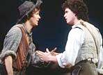 The best starting point for what's right and wrong with The Adventures of Tom Sawyer, the new musical based on Mark Twain's novel, are Heidi Ettinger's sets. Ettinger, who also worked on Big River, the 1985 Tony Award winning musical adaptation of Mark Twain's Huckleberry Finn, has given the town of St. Petersburg, Mo. the look of a colorful three-dimensional folk art painting or quilt. The designer clearly intends to echo Twain's portrayal of boyhood life along the Mississippi. A curved wooden ramp resembling a playground slide and a tree that looks like a giant appliqued fly swatter are part of this visual accompaniement for the unfolding adventures of mischievous Tom and his St. Petersburg chums. For the cave scene, the set ingeniously shows both the underground place in which Tom Sawyer (Joshua Park) and his girl friend Becky Thatcher (Kristen Bell) are lost and the town above where the anxious townspeople have mounted an all-out search. The double-tiered inside-outside set is a stunningly effective piece of stagecraft. Unfortunately, it is also the show's most all-around successful scene and doesn't come until well into the second act. The potential tragedy and the agony of Tom's Aunt Polly (Linda Purl) and Becky's father Judge Thatcher (John Dossett) is real and powerful. With "Angels Lost", sung by Polly and the Judge and the townspeople, Don Schlitz, whose experience has heretofore been as a country music songwriter, displays a genuine feel for the special demands of the theatrical musical. With the exception of a novelty number, "I Can Read", in a scene between Huck Finn (Jim Poulos) and the kindly Widow Douglas (Jane Connell), and "This Time Tomorrow", (another solo by Linda Purl), the rest of Schlitz' score is melodic but hardly memorable. It's too bad that Scott Ellis cut another ballad (by Aunt Polly and the Judge) that I heard during a sneak peek press event (Tom Sawyer Preview ) which had much of this song's quality. It promised to strengthen the relationship between these characters and would have given a much needed lift to the first act. Like the music, the lyrics also aren't particularly distinctive and the twang-y country flavor one would expect from this songwriter is disappointingly absent. As for Ms. Ettinger's appealing looking set for the day-to-day doings of the town, it's flexible enough to accommodate a variety of locations but somehow the look is more that of a pop-up book than an authentic folk painting or quilt -- something drawn with markers and crayons or stitched by machine. This also brings us to Ken Ludwig's adaptation. He has adroitly cut and pasted together most of the book's anecdotes and effected some sensible changes along the way, notably making Aunt Polly younger and less shrewish. Everything guaranteed to make the kids laugh and clutch the edge of their seats is there -- from the famous fence whitewashing (the only scene with any choreography that merits praise) to the the trial of the innocent Muff Potter (Tom Aldredge) to the deliciously scary encounter with the play's bad guy, Injun Joe. What's missing, as in the setting for the town, is a sense of authenticity which in this case is the voice of the man who spun these anecdotes not so much as a tale for children but as a witty, outsider-looking-in commentator on the lives of children growing up in America circa 1844. To Ludwig and director Ellis's credit, they have not bowed to the political correctness police by making Injun Joe (Kevin Durand) a kinder, gentler Indian. But this is a single departure from a general emphasis on providing a non-threatening, non-controversial, feel-good experience. This nicely-nicely approach includes a town that has been integrated, with even one of its most influential citizens, Reverend Sprague, an African-American (Tommy Hollis). Given the play's pre-Civil War time frame this particular bit of color-blind casting would be something of a stretch if Hollis didn't have the best voice in the whole cast. His revival style funeral service in the penultimate scene is one of the show's high points. The six to twelve year olds in the audience won't be bothered one whit by the "what's wrongs" of staging, music and book. (My just-about-to-be-eight grandson called me with an "I liked it" report after seeing last Saturday afternoon's matinee. On the other hand he didn't go around singing the songs as he did with The Music Man or You're A Good Man Charlie Brown). Nor will the kids have any complaints about Joshua Park's Tom, Kristen Bell's Becky or Jim Poulos' Huck -- all of whom acquit themselves well considering their lack of Broadway experience. Park's dark curls and athletic energy will no doubt be a special draw for pubescent girls. The grownups will, and rightly so, prefer the adult performers all of whom are excellent. They'll also appreciate the lush fabrics and colors in which Anthony Powell has dressed the townspeople, young and old. The hair design by David Brian Brown is just a bit too, well, wiggy. Mostly the adults' enjoyment will come from watching the children enjoying themselves for, when all is said and done, this is a show mostly for children accompanied by adults rather than a show which happens to be suitable for kids as well as adults.